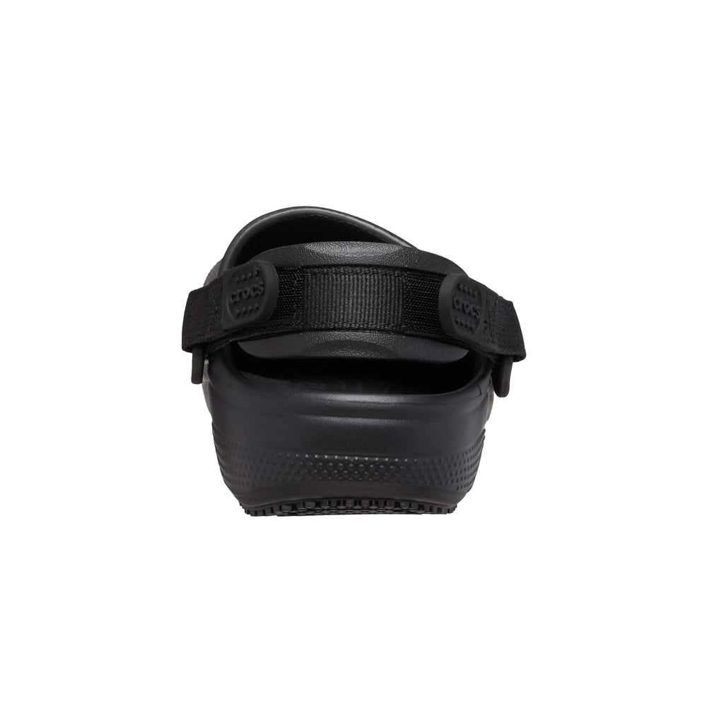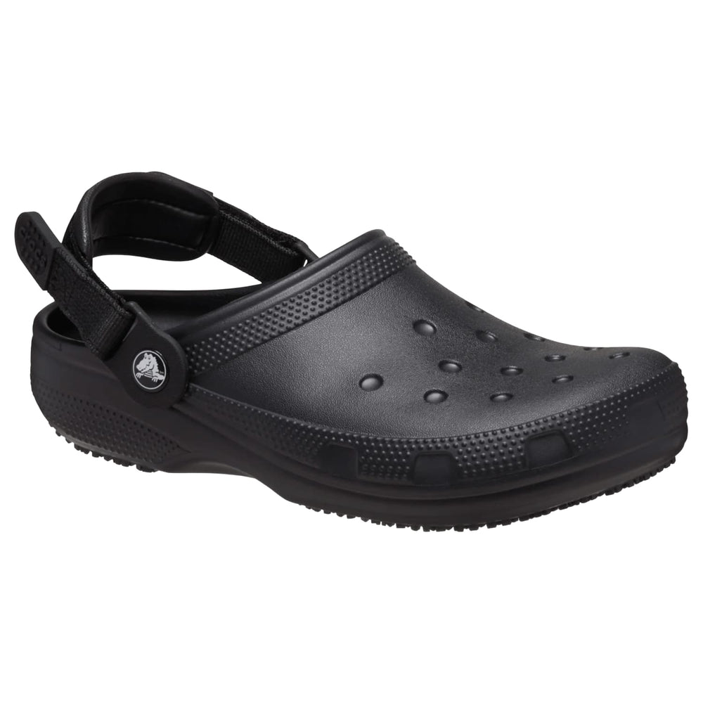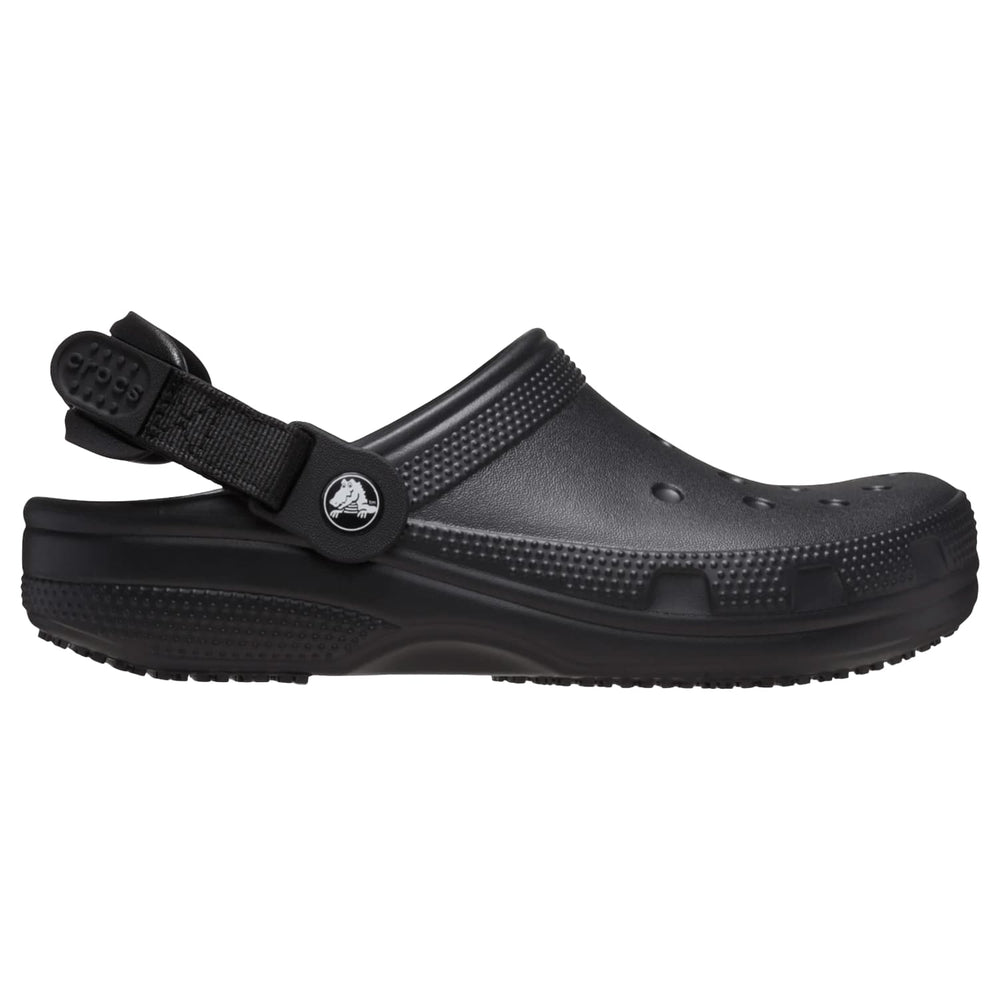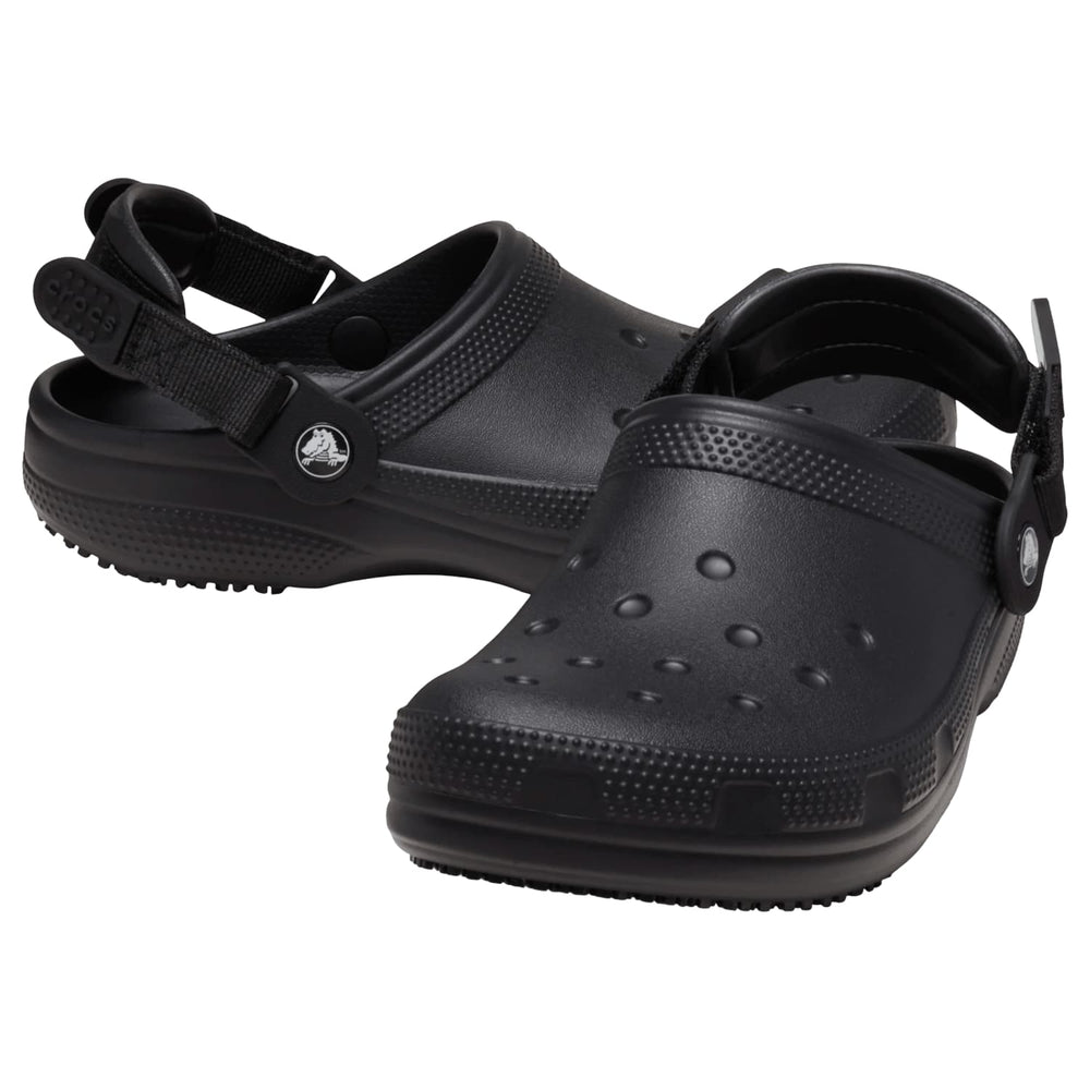 The Crocs Classic Work Clog is designed for workers who need lightweight comfort, spill protection, and slip-resistant traction during long shifts. Made for food service, hospitality, and healthcare settings, this clog features Crocs Lock™ tread for added grip, a waterproof upper, and an enclosed toe to help protect against workplace messes. The pivotable adjustable backstrap allows a more secure fit, while the fully molded design stays easy to clean and comfortable all day.